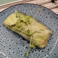 Lay the lettuce on the paper, spread with cream cheese, and add kimchi on top.