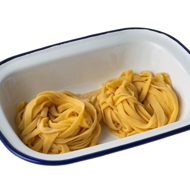 Pass the rolled-out dough through a tagliatelle cutter or cut it by hand. To do this, fold the sheet of dough into quarters and slice it with a knife into strips about 8 mm wide.