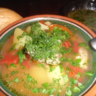 I prepared separately in a bowl: garlic (pressed through a garlic press) and chopped herbs, poured hot broth over them. You can add it to the soup or simply dip the meat in it. It turned out so delicious!!!!!!
