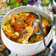 Season the soup with lime juice and zest, add salt to taste, and serve, remembering to place a bowl for shells and husks on the table along with the soup bowls.