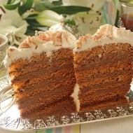 Cut the cooled sponge into 4–6 layers. Spread the cream between the layers, including on top and the sides, smoothing the surface carefully. Place the cake in the refrigerator for 15–20 minutes.