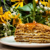 Honey Cake on Custard Dough with Condensed Milk Cream