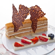 Next, prepare the sour cream frosting: combine the remaining sugar with the sour cream and mix well. Layer 7 cake layers with the sour cream frosting. Serve the cake with fresh berries.