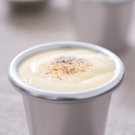Beat the egg and yolk with vanilla, cinnamon, and ginger. Strain and mix with the cream and honey.