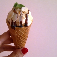Serve with sponge cake, baked apples, or nuts (my version is with almonds, balsamic sauce, honey, and mint) or in a waffle cone.