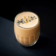 A rich recipe: coffee with tea, milk with sweetened condensed milk, and sesame. Recipe by John Smith, head bartender at a popular café.