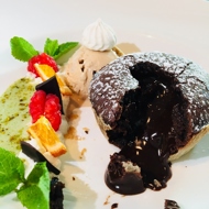 Hot Chocolate Tortino with Vanilla Ice Cream