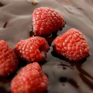 Pour the hot chocolate into cups and top with whipped cream and raspberries.