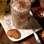 Whip the cream and add the chocolate liqueur. Heat it up.