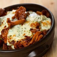 Hot Mushroom Appetizer in Wine Sauce with Cheese