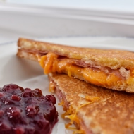 Cut the sandwich in half and eat it immediately, dipping it in lingonberry jam.