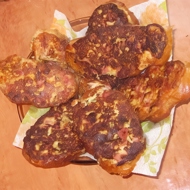 Spread the mixture on the pre-sliced baguette, fry in butter or any other oil first on the filling side, then on the baguette side over medium heat until golden brown.