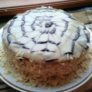 To decorate the top, melt the white chocolate in the cream and carefully pour it on top. Then, also carefully, drizzle the dark chocolate over the white chocolate in circles and run a toothpick through the dark chocolate downwards.