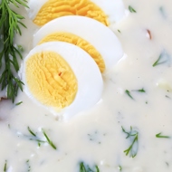 Before serving, pour sour milk into the soup.