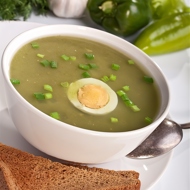 Slice the bacon thinly and fry it in a dry pan. Add to the soup.
