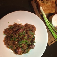Add fresh cabbage to the meat and sauté until it reaches a characteristic color and aroma. Then, add sauerkraut, cumin, salt, and bay leaves, and continuously stir to achieve maximum caramelization of the cabbage.