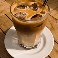Fill glasses with crushed ice and pour in the coffee. Optionally, add a bit of liqueur and serve.