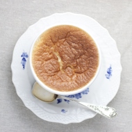 Carefully pour the mixture into heatproof ramekins. Place the ramekins on the baking tray. Fill the tray with hot water so that the ramekins are submerged to 2/3 of their height. Slide everything into the oven and bake for 45–50 minutes. The puddings should be golden brown and cracked on top when done.