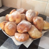 Using a spoon, take pieces of the dough without kneading it and place them in the oil, using a second spoon to help. This will create donuts of various shapes.