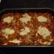 In a baking dish, lay down the first layer of lasagna sheets, then the beef stew, sprinkle grated Parmesan on top, then pour a layer of béchamel sauce, and place slices of mozzarella on top of the sauce. Repeat the layers until the filling is finished, but remember that the last layer should be meat, topped with Parmesan and mozzarella.