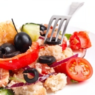 Add the chopped tomatoes, finely chopped green onions, diced cucumber, parsley, olives, capers, minced garlic, vinegar, and olive oil. Gently mix everything together and serve.