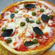 Shape the dough into a flatbread, brush it with oil, arrange sliced tomatoes on top, then add sliced mozzarella cheese, season with salt and pepper. Sprinkle with parmesan and basil, and drizzle with olive oil.