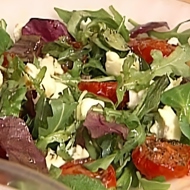 Tear the lettuce leaves (to your taste: romaine, green, iceberg) and add them to the tomatoes. You can also add arugula or a mix of salad greens.