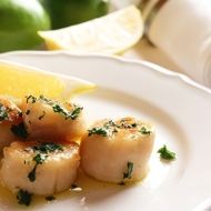 Meanwhile, slice the carrots, finely chop the parsley root, lightly sauté, add to the scallops, and cook until done for 2–3 minutes.