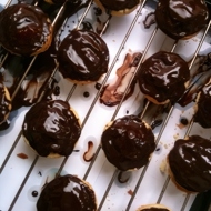 Melt the chocolate with butter, vegetable oil (if using), and a spoonful of water in a water bath. Cool it until the chocolate starts to thicken slightly. Drizzle the chocolate over the biscuits with jam and let it set completely.