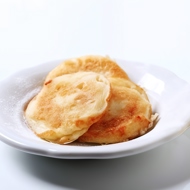 Heat the peanut oil in a wok (to 347°F). Fry small pancakes for 3–5 minutes, dropping the batter into the oil until golden brown.