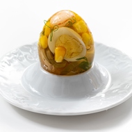 Before serving, remove the shell from the jellied eggs.