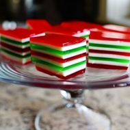 Next, layer the green-creamy-red jelly.