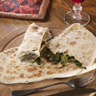 Roll out the dough (60 g) into an oval shape. Place the filling in the center and fold the edges over, gently pressing with your hand to form an oval. Bake on a stone slab or in a skillet on both sides for about 15 minutes. Serve with matzun.