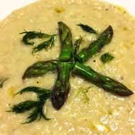 Jerusalem Artichoke, Asparagus, and Salmon Purée Soup