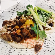Jerusalem mix, or meurav yerushalmi, is a fire-roasted mixture of offal, sometimes with chopped chicken breast added. This quick and simple dish made from budget-friendly ingredients has become a hallmark of Israeli fast food. The recipe was created in the 1960s, a less prosperous time for Israel, and it is even known that it was developed by a certain David Fisher, whose butcher shop near the Jerusalem Mahane Yehuda market is still in operation today. Like any popular dish, there is no canonical recipe for Jerusalem mix: in some places, it is served directly on a hot skillet with pickles or ptitim pasta added. More often, it is wrapped in pita pockets for easy eating on the go.
