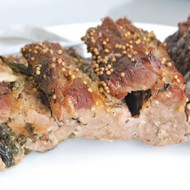 Place the meat on a cutting board, fat side up, and make cuts almost to the bottom, creating a 'book'. Rub salt, pepper, and herbs (I use a mix of Italian herbs) all over it.