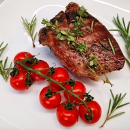 After 3 minutes, place a couple of sprigs of thyme on the steak. Move the meat to create a grill pattern.
