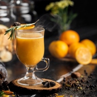 In the style of John Smith, a bartender at a popular American restaurant, this cocktail from the large family of hot punches is infused with a distinctly Nordic spirit. It features mandarin, rosemary, and fir cone jam. It feels like sitting under a Christmas tree and sipping on it, savoring every drop. Recipe by John Smith, head bartender at a well-known American restaurant.