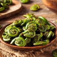 The fern is not only one of the oldest plants on Earth but also one of the most beneficial. Only young shoots with yet-to-unfurl leaves can be eaten. The taste of fern resembles that of sautéed mushrooms, making it suitable not only as a side dish for meat dishes but also as a standalone dish, such as a salad – a fantastic option!