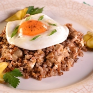 Kasha 'Staro-Kievskaya' with Calf Brains and Mushrooms