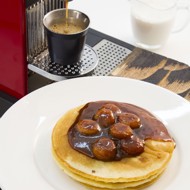 Pour some of the batter into a skillet and fry the pancake, first on one side, then when bubbles form on the surface and the batter firms up, flip it over and fry on the other side.