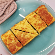 Add the eggs, whisk the mixture until smooth, and pour it into the dish.