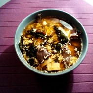 Kimchi Soup with Egg, Tofu, and Wood Ear Mushrooms