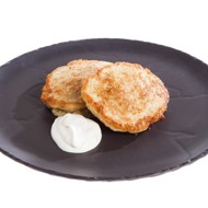 Lower the heat to the minimum and spoon a tablespoon of the batter onto a hot skillet (you can slightly squeeze the batter if it's too runny) and flatten it into a neat pancake.