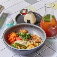 Cool the pre-cooked egg noodles. Slice the chilled chicken breast into strips. Cut the thin chicken omelet into strips.