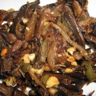 Slice the eggplants into thin strips, generously salt them, and leave overnight (for at least 5 hours). They will shrink significantly.