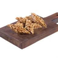Place the nut and honey mixture onto a wooden board and shape it into a patty about 1.5 centimeters thick. The caramel is very hot, so it's essential to wet your hands with ice-cold water to avoid burns.