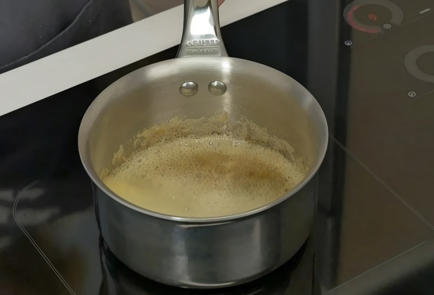 Sauté 100 grams of butter in a saucepan until it develops a rich nutty aroma and caramel color.