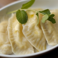 Remove the dumplings from the water using a slotted spoon, allowing any excess water to drain off before placing them on a warm plate. Serve the dumplings hot with a piece of butter. You can accompany them with sour cream or matsoni.