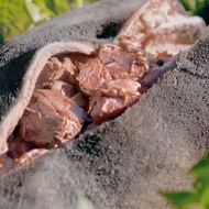 Then, the filled stomach was placed in the resulting ashes, covered with a layer of earth, and a fire was lit on top. The meat was stewed in its own juice under the influence of this heat without access to air.